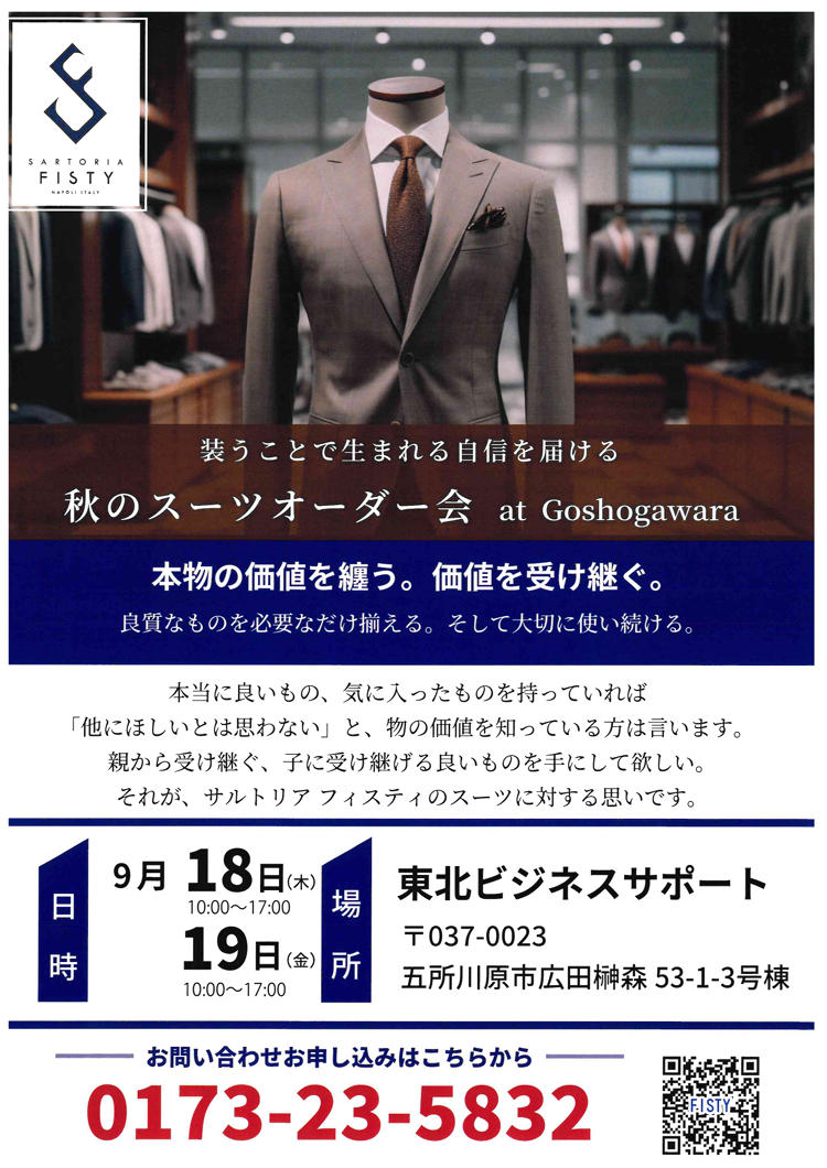 当事務所におきまして「秋のスーツオーダー会」を開催いたします。