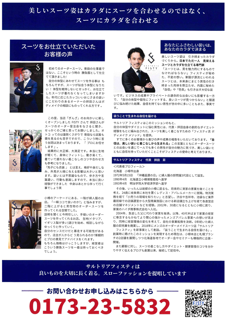 また、スーツを美しく着こなすためのボディメイクメソッドもご提供されています。
